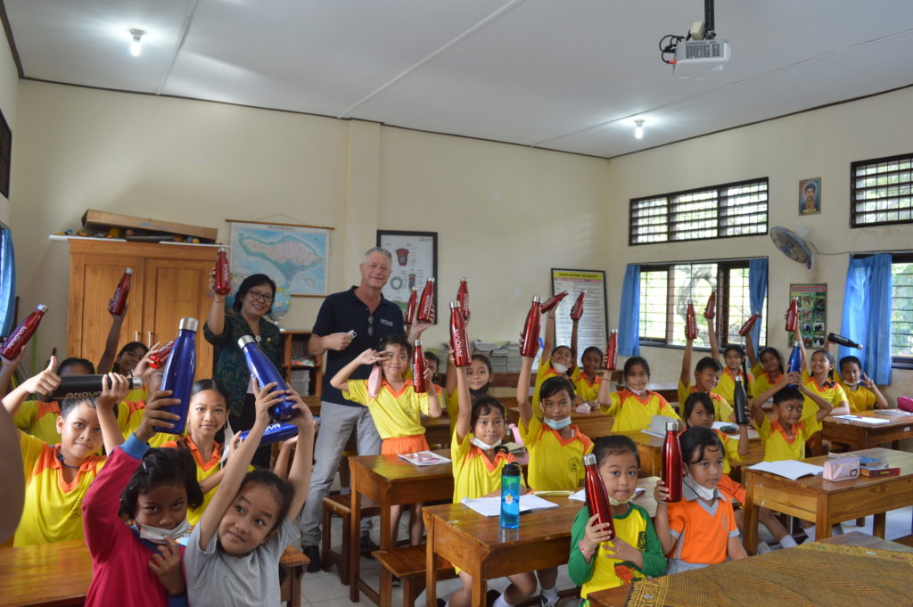 In early 2022 we installed the first RO filter at primary school SD Negeri 12 Sesetan (327 students), and donated reusable tumblers to provide children with safe access to drinking water and educate about single use plastic, such as the plastic Aqua glass or bottles usually consumed.